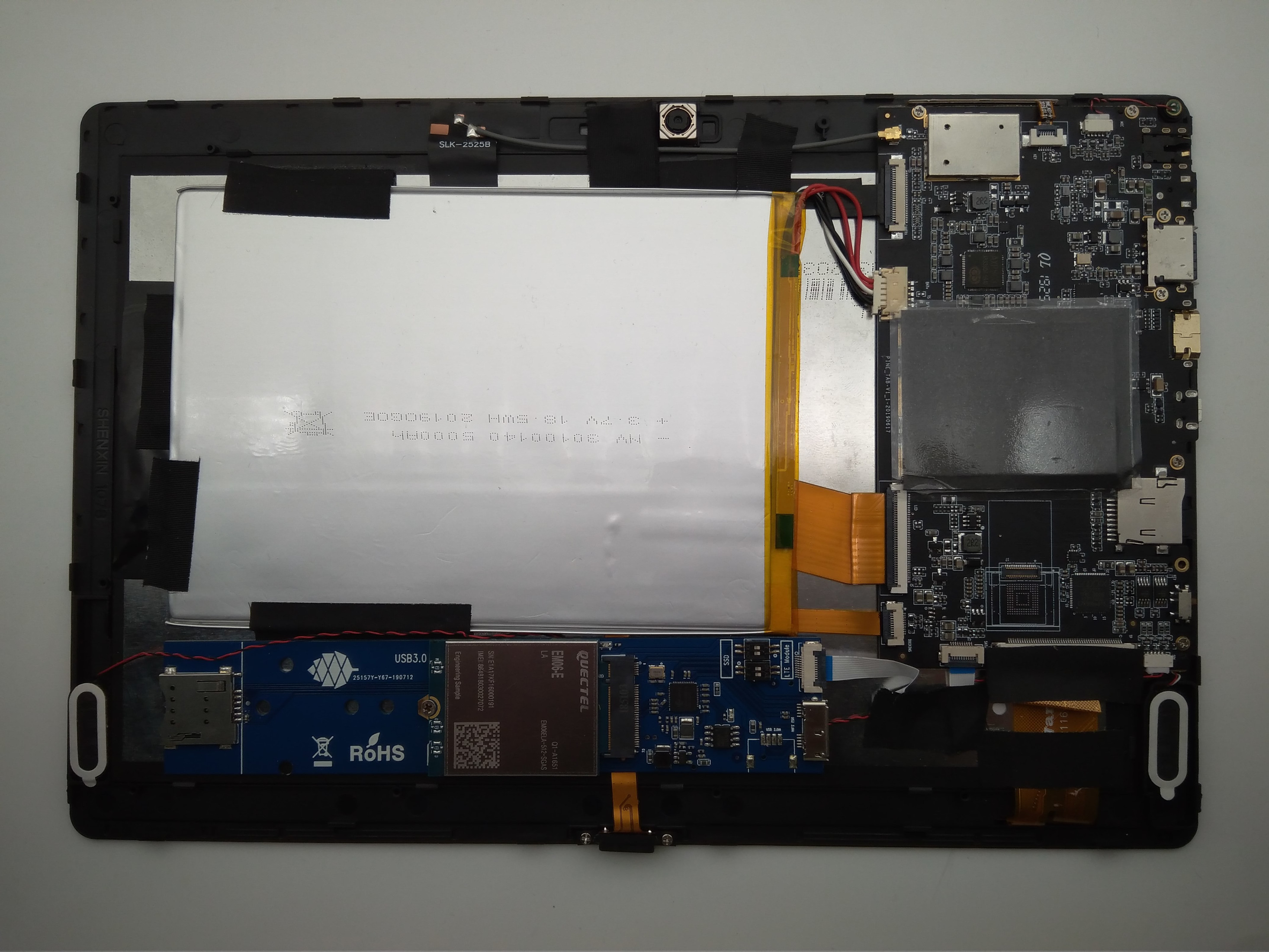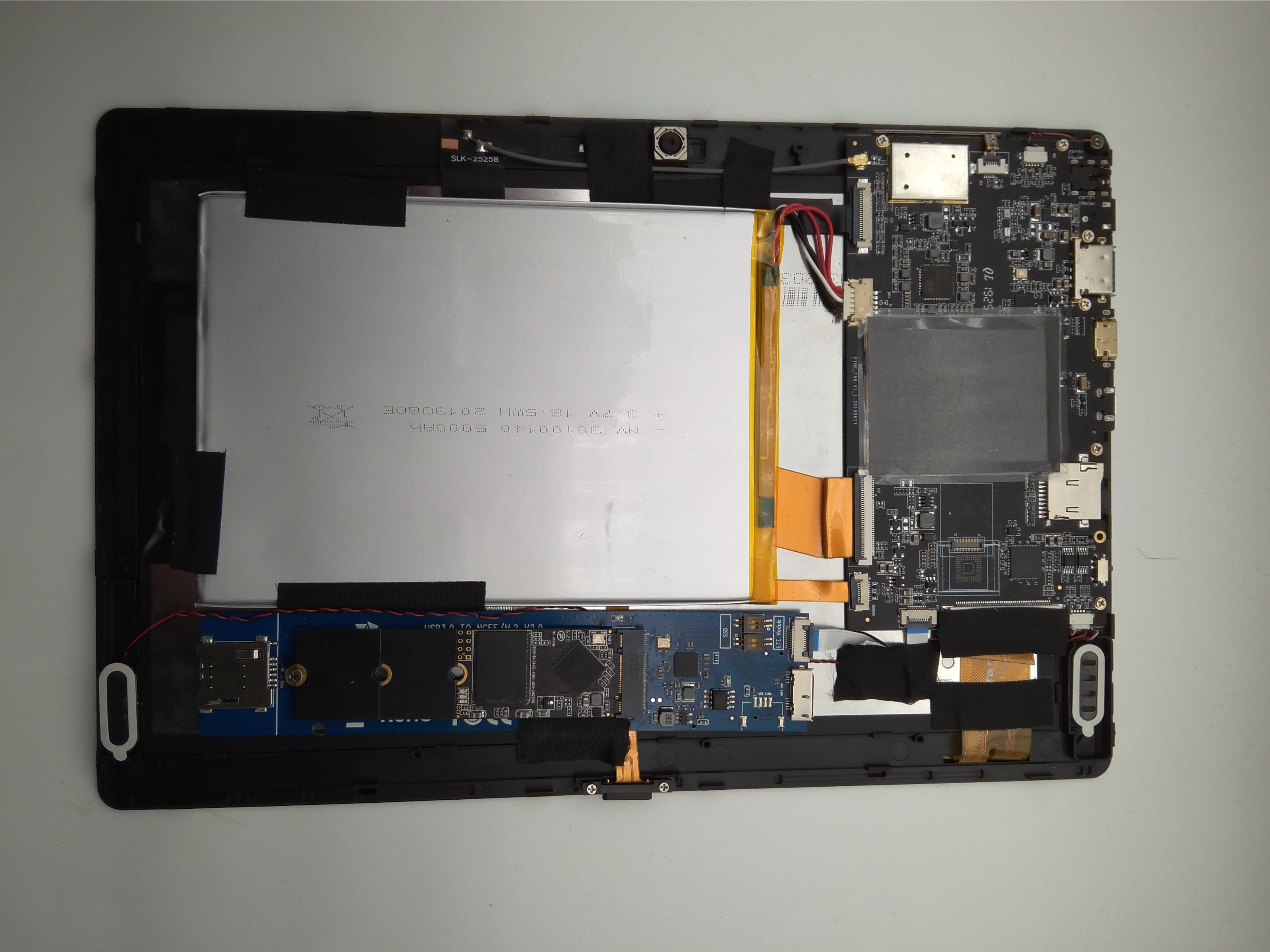 Speaking of shipping, apart from the handful of reported shortcomings, the hardware is coming together nicely and we’ve already locked in the key specs weeks ago. At this point production could start any moment granted a suitable OS image becomes available; I’m discussing software progress further down in this post. As we announced in June, a number of upgrades have been made to the PineTab since the February unveiling - this includes a larger 64GB eMMC capacity (voted on by the community) as well as an optional M.2 key adapter that can be used for LTE or storage. I expect that the potential to mount a LTE module is of particular interest to many users on-the-go. I am including pictures of the PineTab with a M.2 SATA drive and LTE module mounted in the case.
