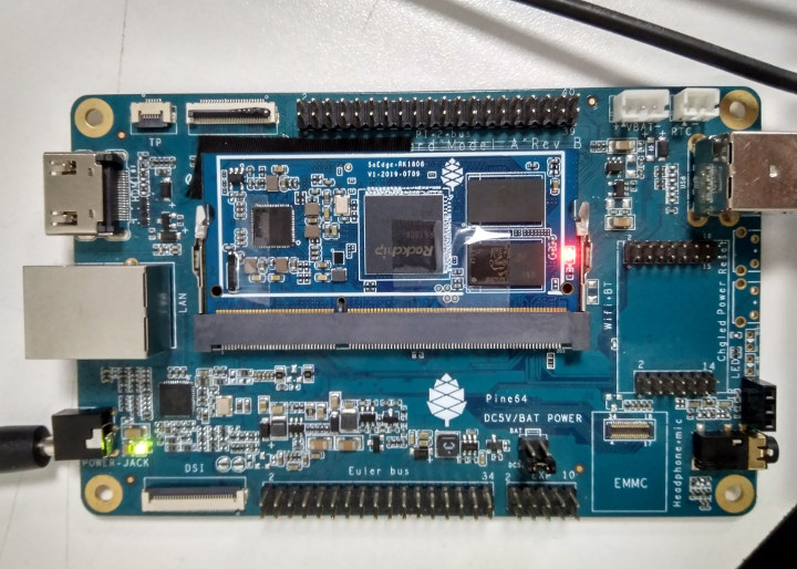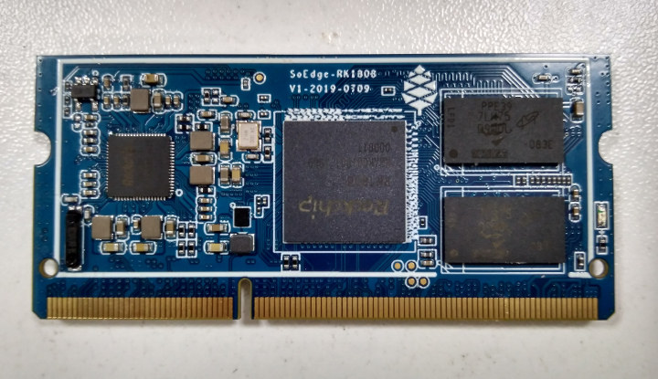 This is more of a teaser than a full blown announcement. As I have hinted in the June community news update, we have been toying with the idea of an AI module for some time. In fact, we initially intended for an AI variant of the RockPro64 but decided against it due to delays of the RK3399Pro SOC. Since we initially set out to create a RockPro64 AI a more feasible alternative arose, namely the option of creating a stand-alone AI module that can work independently or in conjunction with an existing SBC via fast I/O. The SOEdge neural module is based on the RK1808 and comes in a standard SODIMM form factor that it shares with the SOPine. It features 2GB of DDR4 SDRAM, 128Mb of SPI-NOR Flash as well support for eMMC.