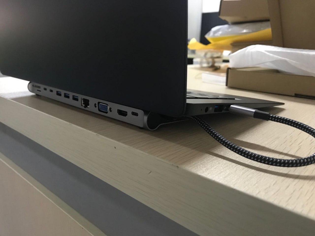 Lastly, I know many of you are waiting for an update on the Pinebook Pro dock. Let me premise this section with an explanation that we’re ready to pull the trigger on production for the dock literally any day now. Developers have, however, been struggling with making the digital and analog (VGA) video outputs work properly and this has held back our decision to start the manufacturing process. That said, this past Tuesday I met with ayufan over a pint of beer in Warsaw and asked him to help the current efforts to make the dock fully functional. I hope and trust that his input will speed the enablement process along. As mentioned in previous community updates, I have been internally torn whether to show the dock or not because there is still an uncertainty whether we’ll proceed to manufacture this design, but ultimately I feel that the community waited long enough to see what we’re contemplating. I am including a picture of a docked Pinebook Pro below, with all the ports of the dock exposed. Please keep in mind that until we know we can have all of the functionality worked out this is still just a tentative design which may change.