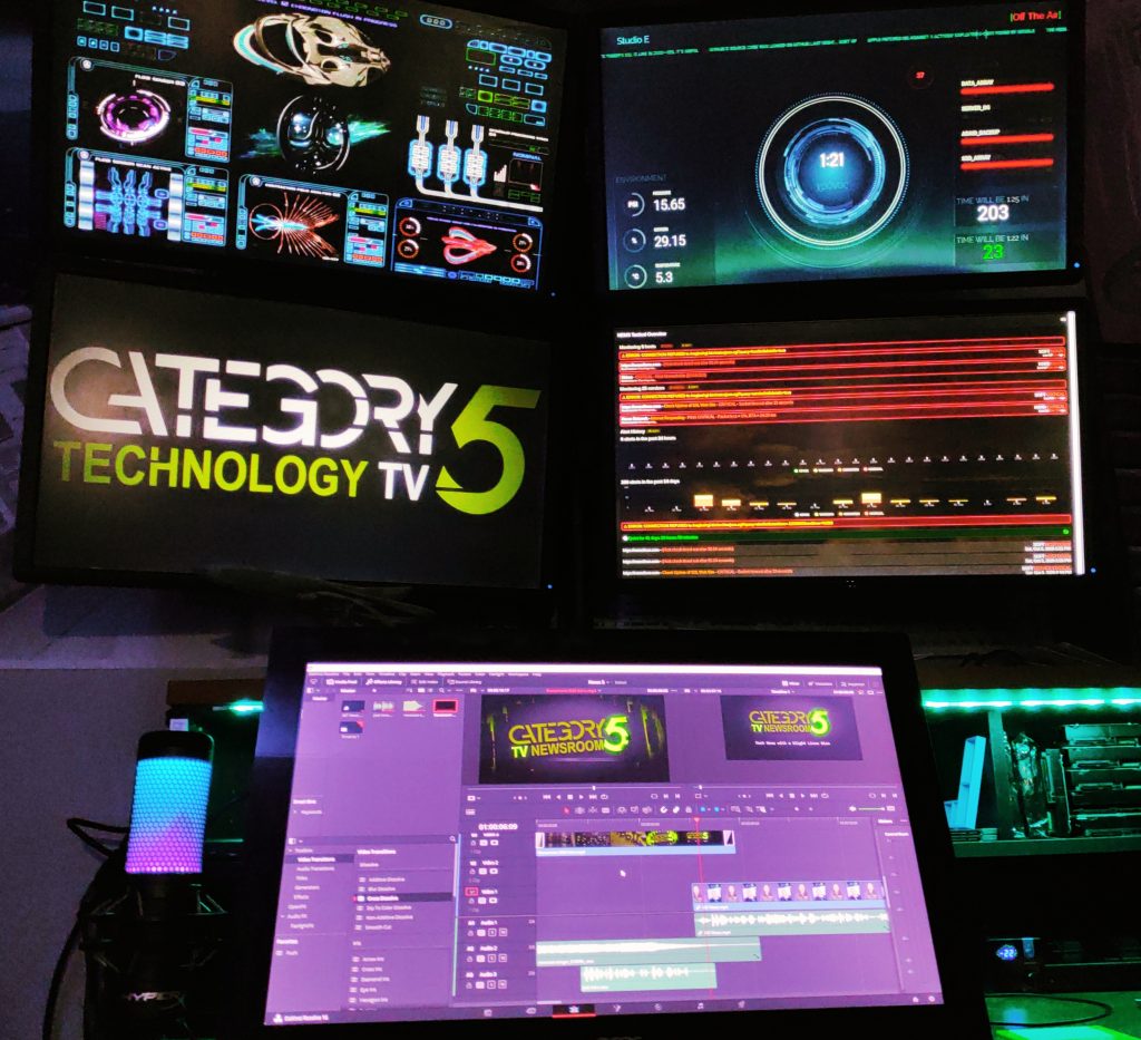 My production workspace on “The Bridge” at Category5 Technology TV. Yes, I enjoy multi-monitor setups.