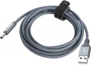 Here are some examples of what you might want to use to get you up and running with a single 5A power supply. The DC power supply goes to an adapter, and that goes to a USB cable that has the proper barrel connection for the Pinebook Pro on the other end. This will provide more than enough current not only for the Pinebook Pro, but the external screen as well.
