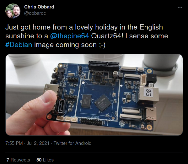 One of the first Quartz64 model-A boards in the wild - also, we will hold you to your word Chris ;)