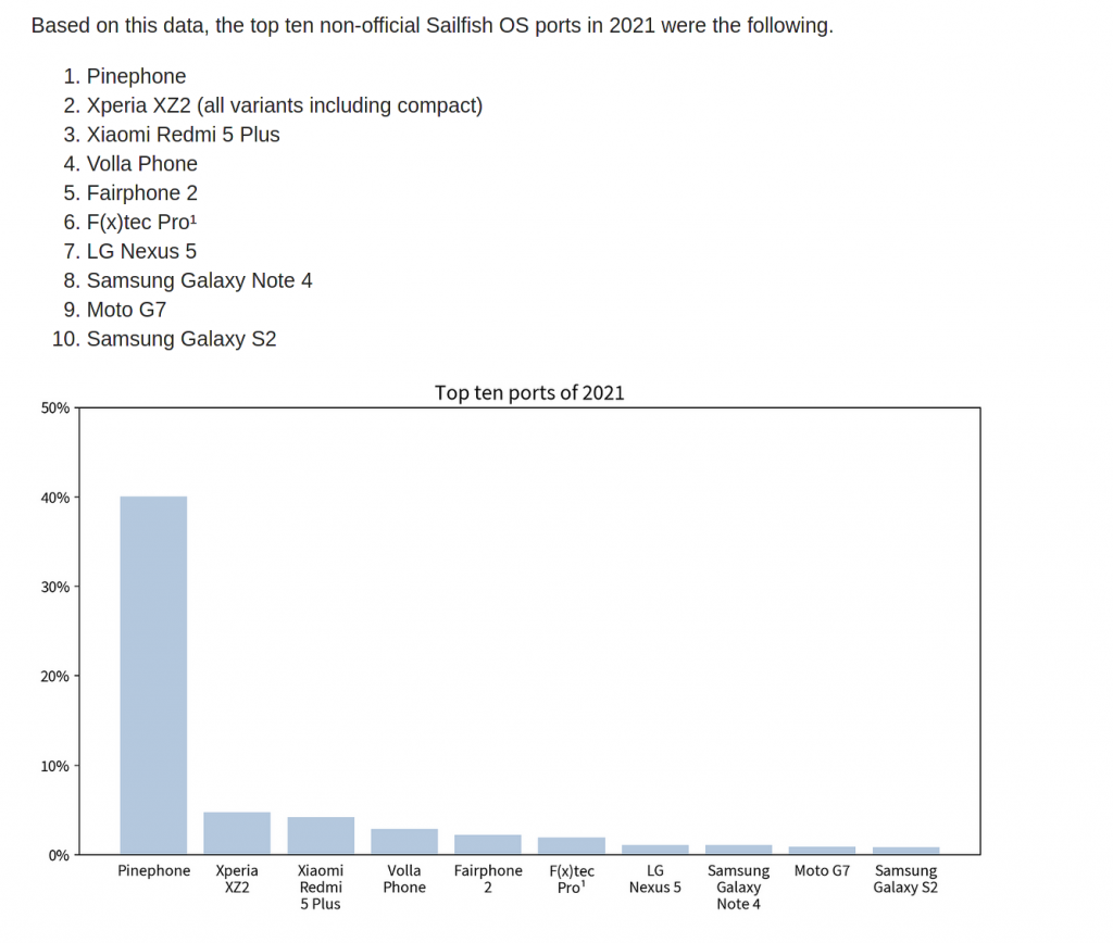 - From Jolla’s community news blog we learn that the PinePhone port of SailfishOS accounts for more than 40% of all installs