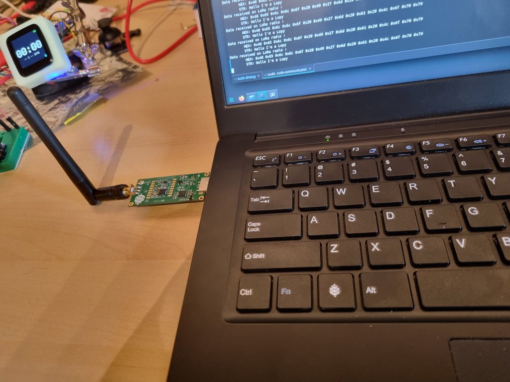 Software support is very rudimentary for now, but I’m happy to announce that I’ve recently published the source code of my driver for both devices. This driver is still very basic and allows to send and receive raw LoRa messages. The repository contains a chat demo application ”Communicator” that allows you to send and receive text messages over LoRa. In the following video, you’ll see a simple chat between my desktop computer, the Pinephone, and a Lopy board: video: