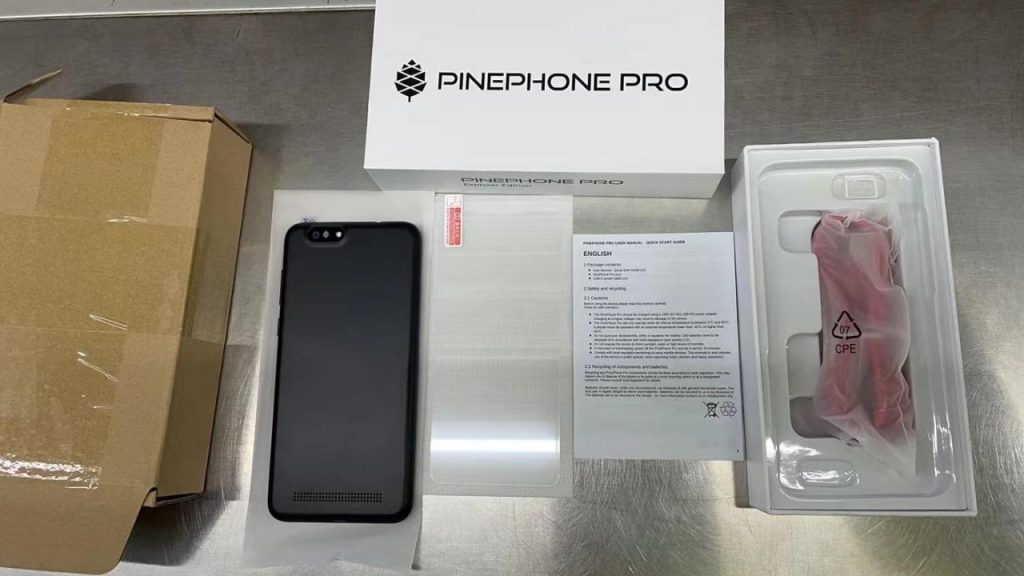 PinePhone Pro picture from the production line - this is what you get in the box