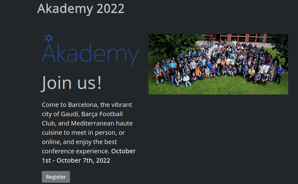 We’re once again one of the sponsors of this year’s Akademy, which is taking place in Barcelona 1-7 October. For those of you who don’t know about Akademy - it is an annual non-commercial meetup organized by the KDE Community. From memory, this is the 5th time that we’re a part of and sponsoring the event. Since this year’s meetup is an in-person event we’ll be flying into Barcelona to attend. Keep an eye out for Marek, TL and myself during the weekend of 30 September and October 3rd. We’re taking this as an opportunity to meet and mingle with people, so it is unlikely that we’ll be holding any talks or the like.