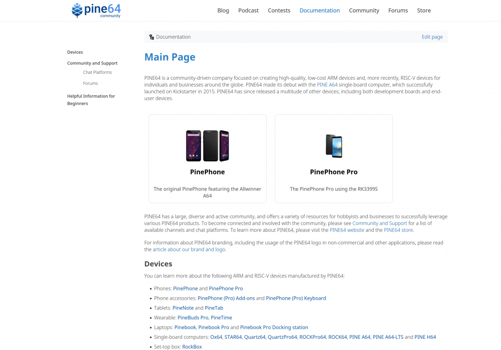Speaking of the PINE64 website, in December of last year I reported that we started on a complete community website redesign. This redesign is much more than a new coat of paint - in fact it takes this website in a completely different direction. The goal is to make the site a hub that ties together all the existing community services while simultaneously exposing key community-driven elements of the project. For instance, clicking the community tab presents you with all the relevant links to chats and other communication platforms, while new blog posts, podcast episodes and news take center stage on the main page. Another part of the redesign, and one that I absolutely love, is the incorporation of all documentation on the actual website. The page is also much cleaner and significantly more light-weight - it is really snappy and a pleasure to visit. We are planning on initially launching the site for testing alongside the current webpage - those willing to help us test and offer feedback are welcome to visit the site starting April 15, here’s the page: beta.pine64.org/.