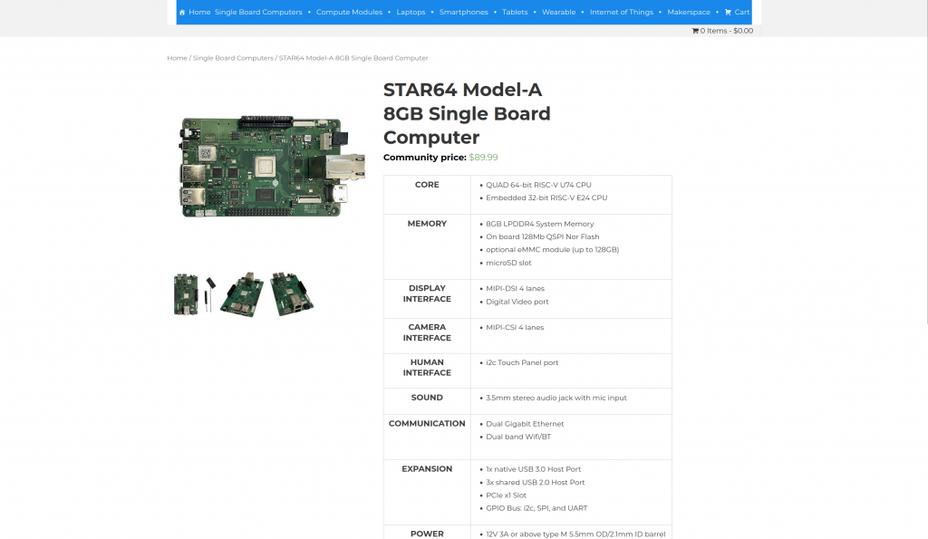 - Star64 will be available on April 4th in two configurations: 4GB and 8GB LPDDR4 memory for $69.99 and $89.99 respectively